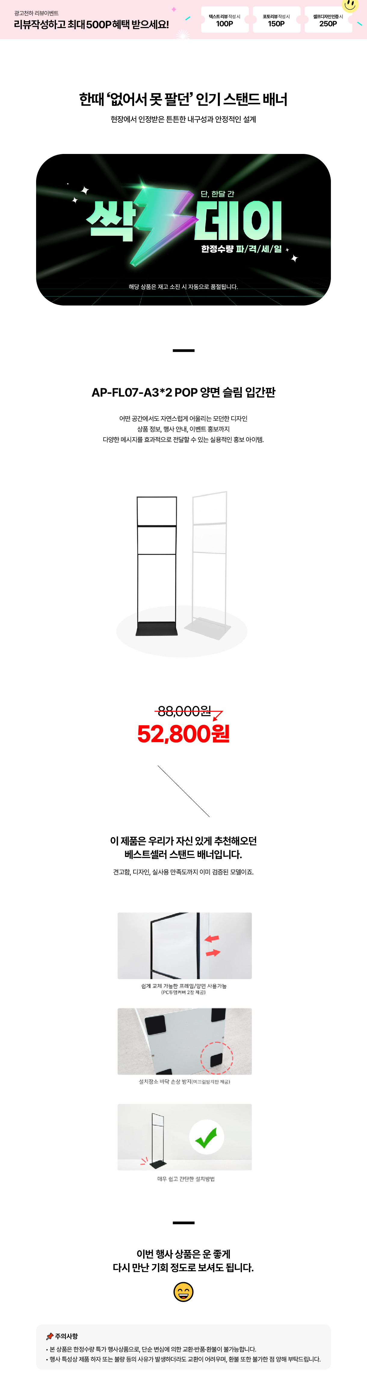 HOME > 싹쓰리데이 > 스탠드배너 > AP-FL07-A3x2 POP 양면 슬림 입간판