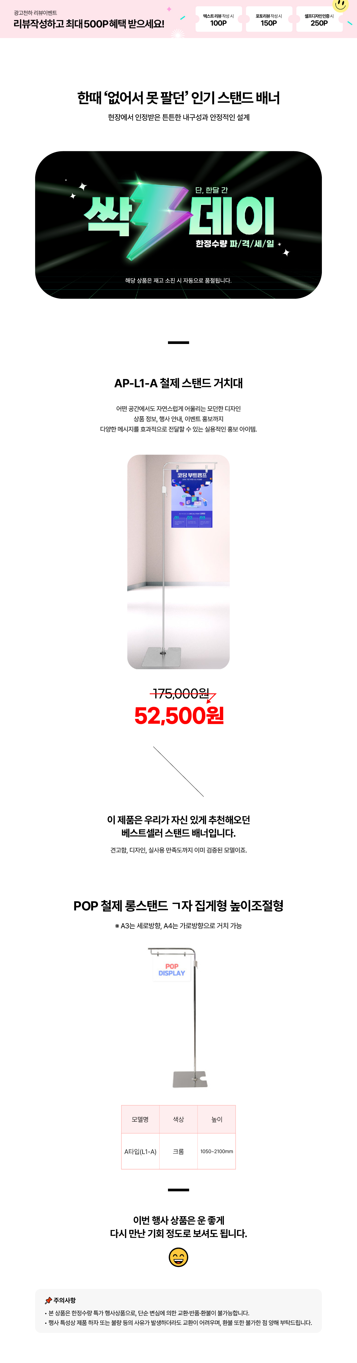 HOME > 싹쓰리데이 > 스탠드배너 > AP-L1-A 철제 스탠드 거치대