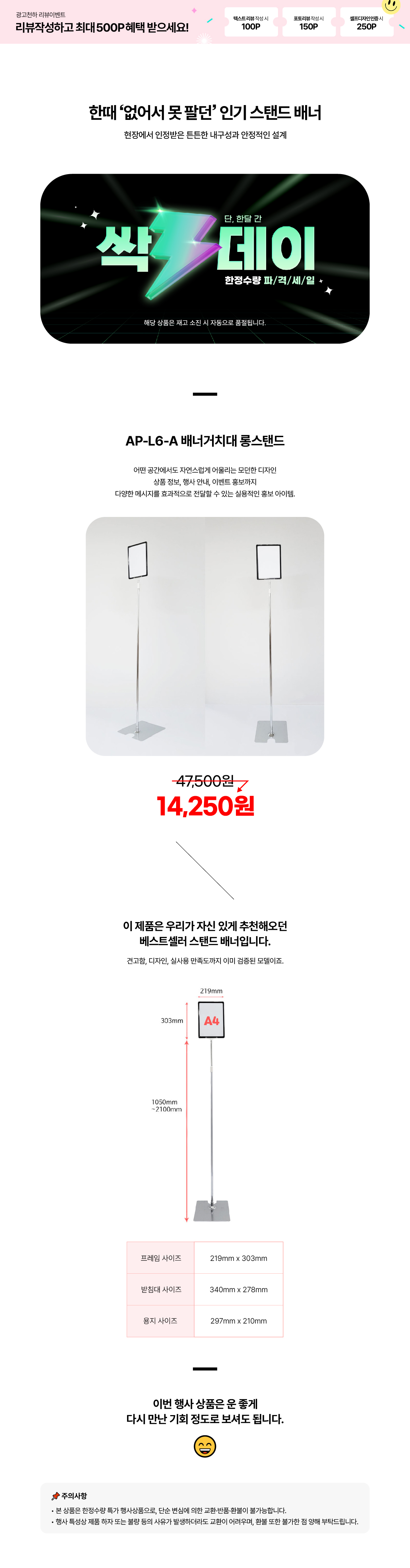 HOME > 싹쓰리데이 > 스탠드배너 > AP-L6-A 배너거치대 롱스탠드
