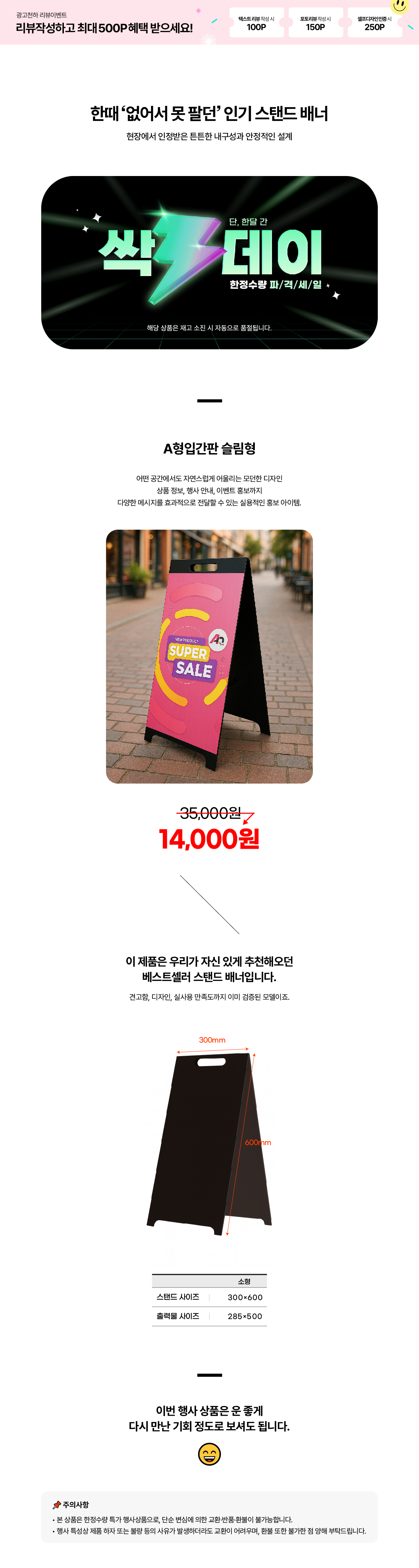 HOME > 싹쓰리데이 > 스탠드배너 > A형입간판 슬림형