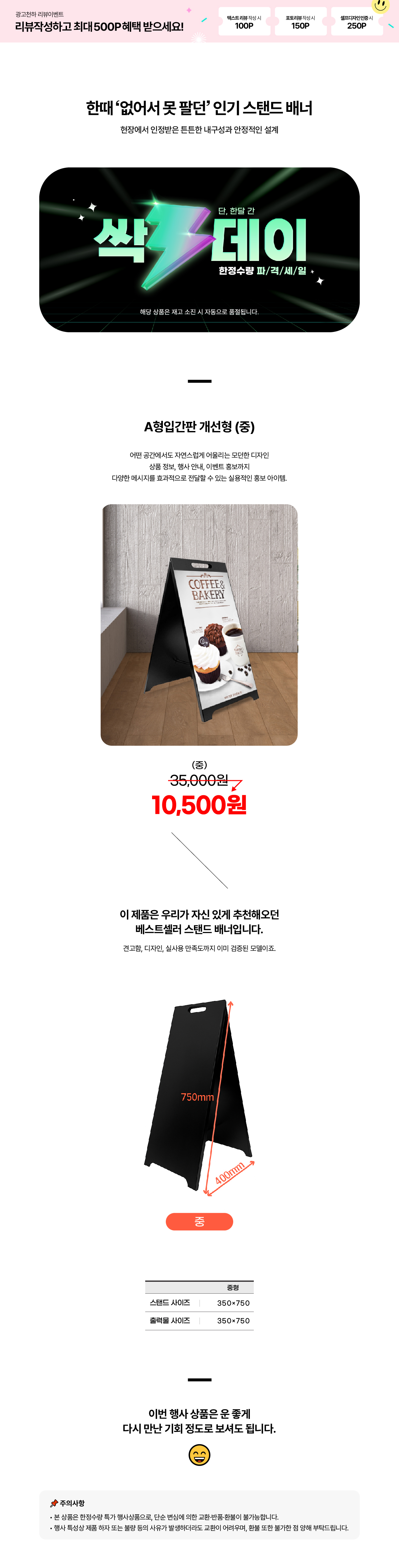 HOME > 싹쓰리데이 > 스탠드배너 > A형입간판 개선형 중