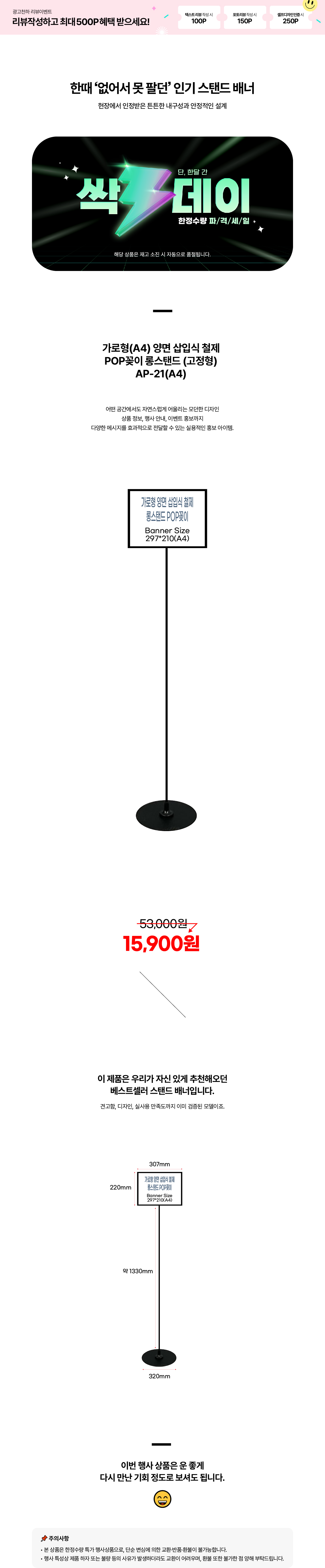 HOME > 싹쓰리데이 > 스탠드배너 > AP-21(A4) 가로고정형