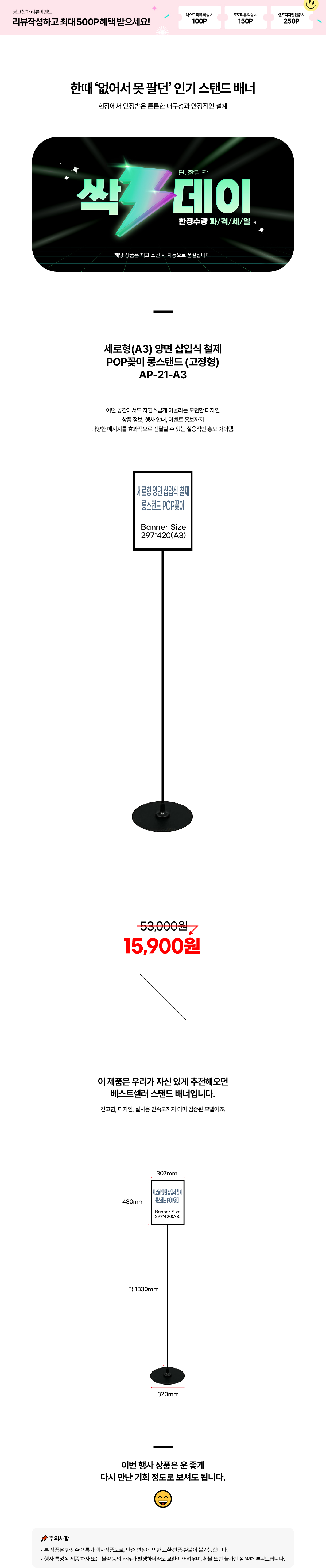 HOME > 싹쓰리데이 > 스탠드배너 > AP-21-A3 세로고정형