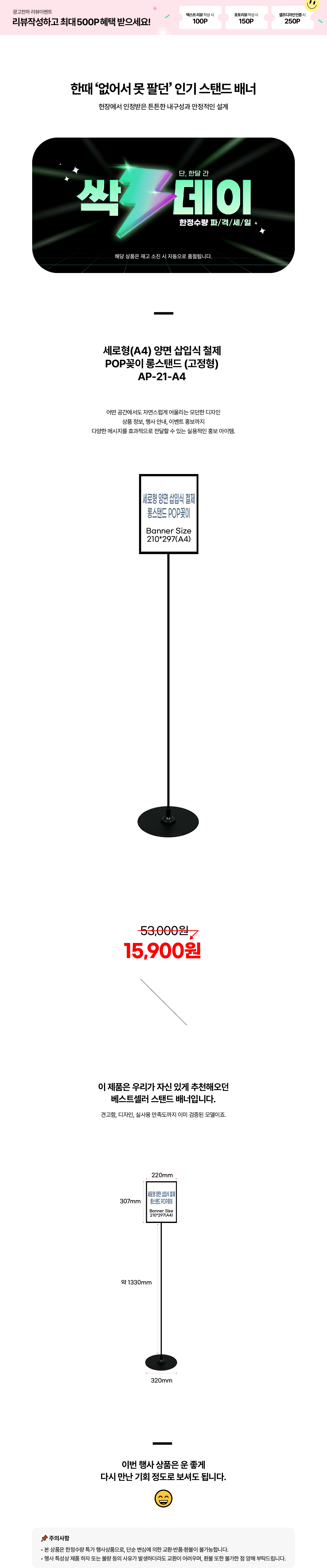 HOME > 싹쓰리데이 > 스탠드배너 > AP-21-A4 세로고정형