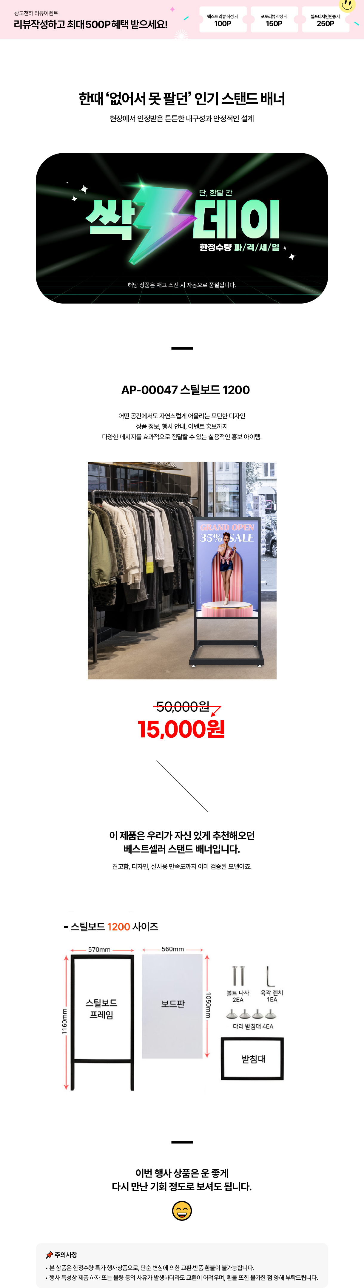 HOME > 싹쓰리데이 > 스탠드배너 > AP-00047 스틸보드1200