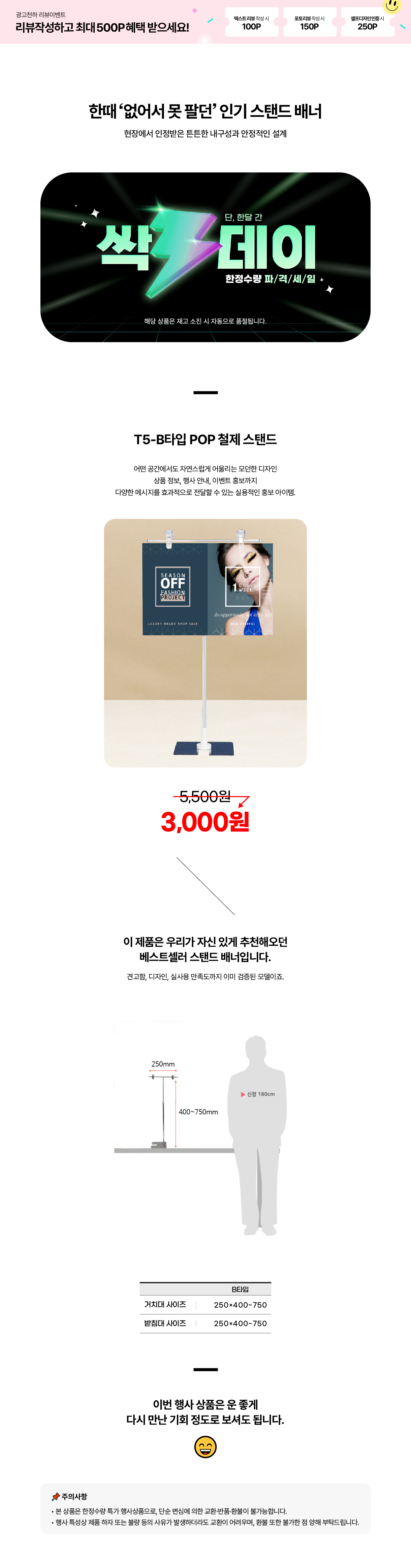 HOME > 싹쓰리데이 > 스탠드배너 > T5-B타입 POP 철제 스탠드