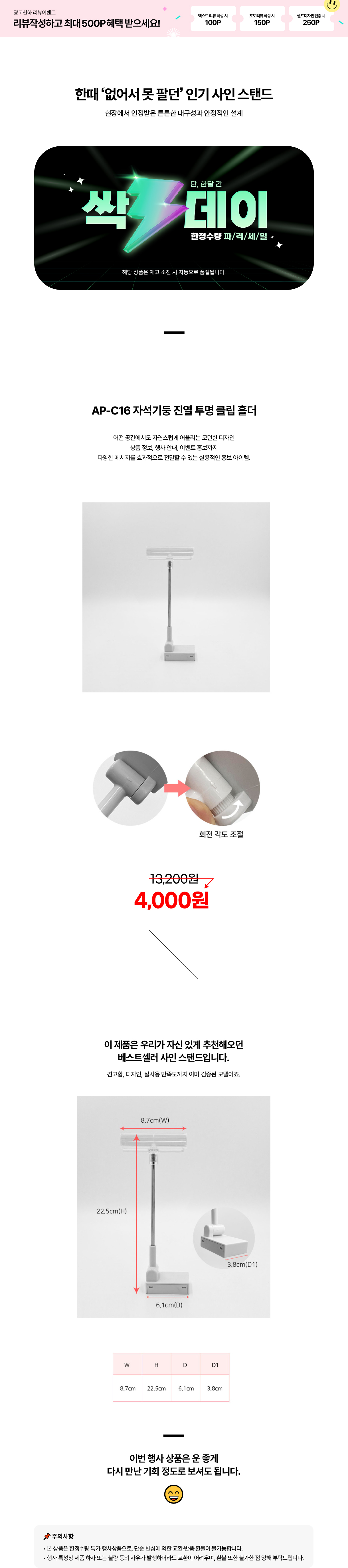 상품명 AP-C16 자석기둥 진열 투명 클립 홀더
