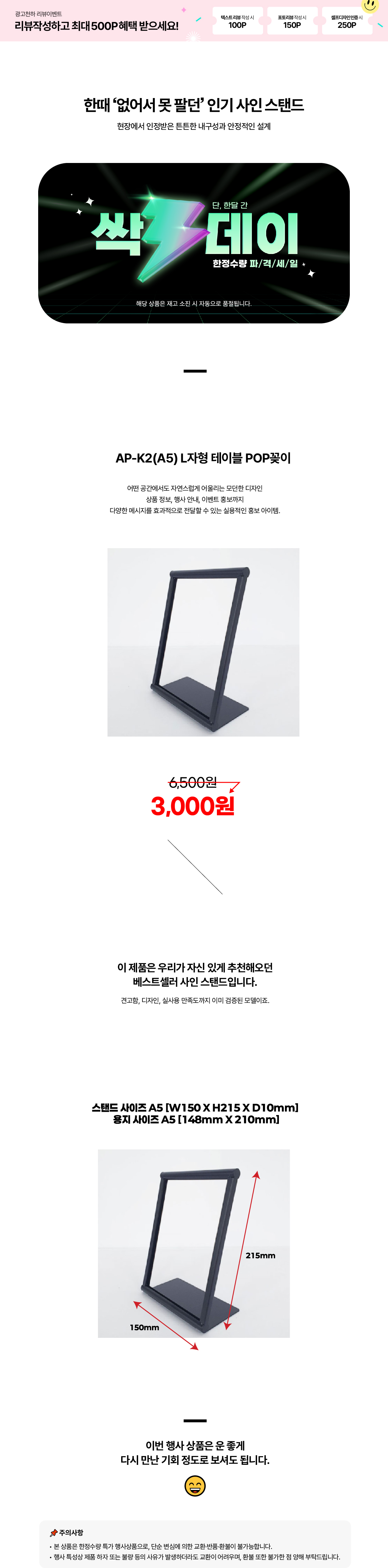 HOME > 싹쓰리데이 > 사인스탠드 > AP-K2(A5) L자형 테이블 POP꽂이