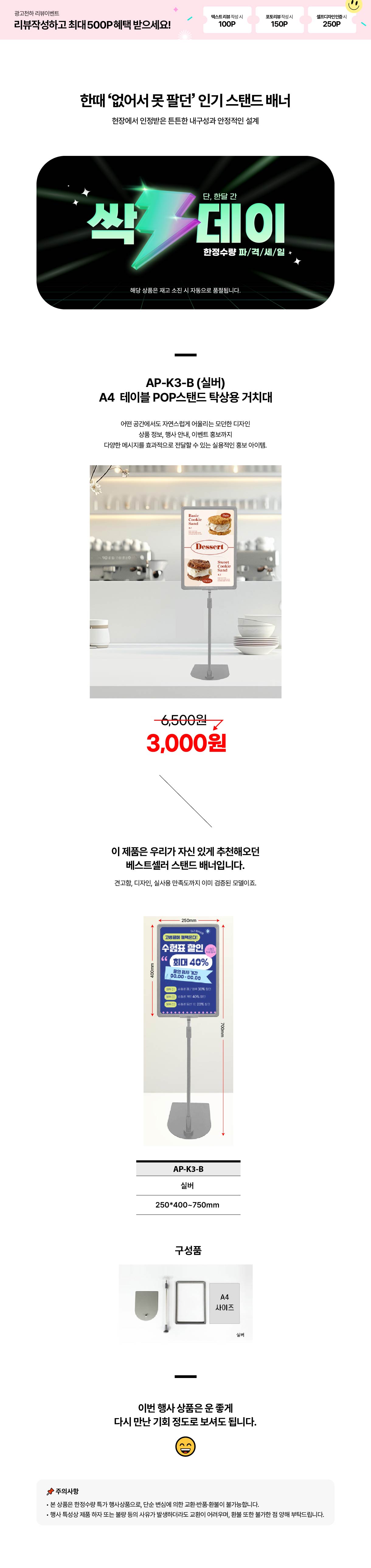 AP-K3-B(실버) a4테이블 pop스탠드 탁상용거치대