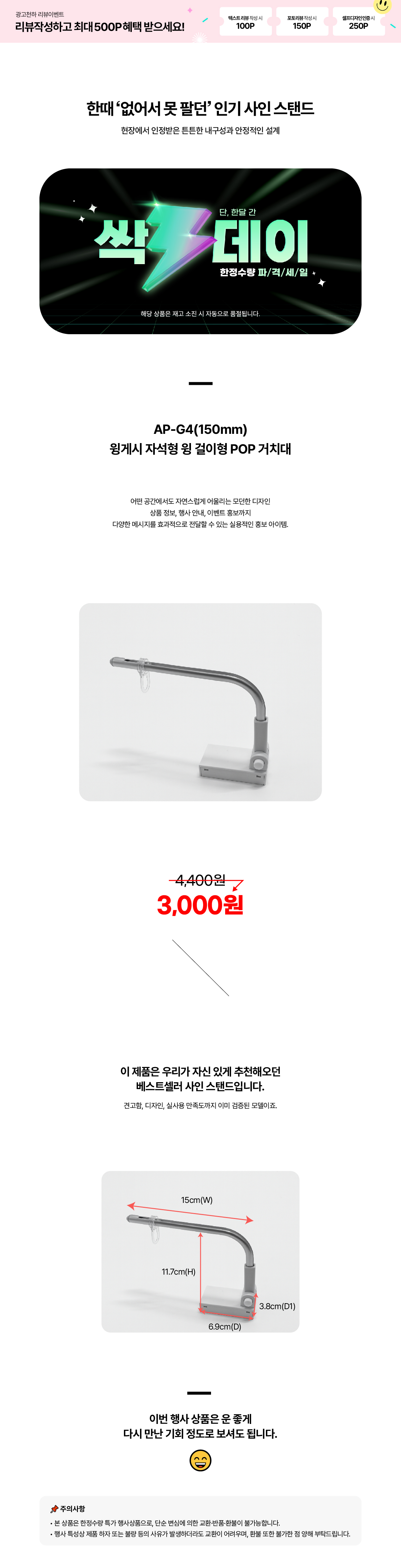 HOME > 싹쓰리데이 > 사인스탠드 > AP-G4(150mm) 윙게시 자석형 윙 걸이형 POP거치대