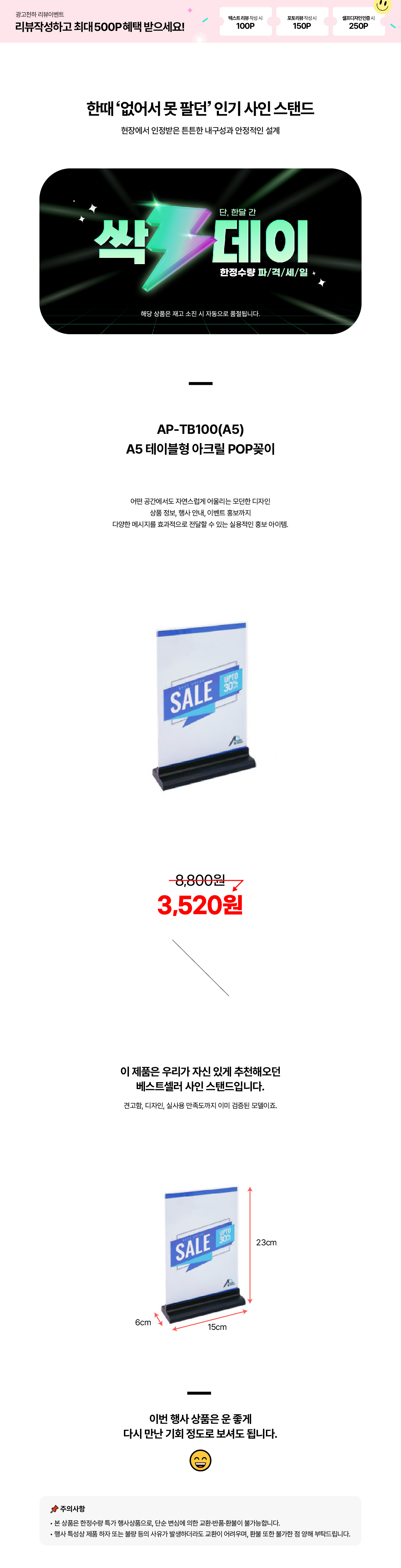 HOME > 싹쓰리데이 > 사인스탠드 > AP-TB100(A5) 테이블형 아크릴 POP꽂이