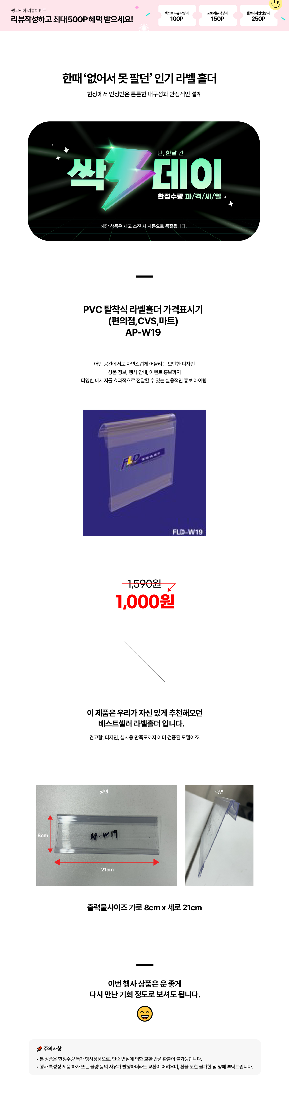 상품명 AP-W19 탈착식 라벨홀더 21*8(PVC)