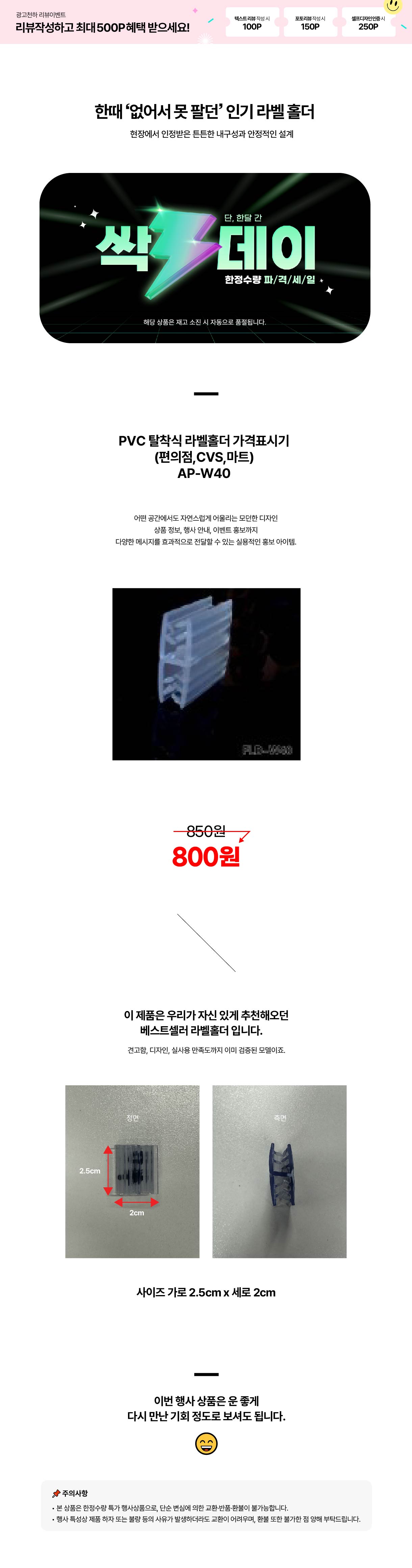 HOME > 싹쓰리데이 > 라벨홀더 > AP-W40 탈착식 라벨홀더 2.5*2(PVC)
