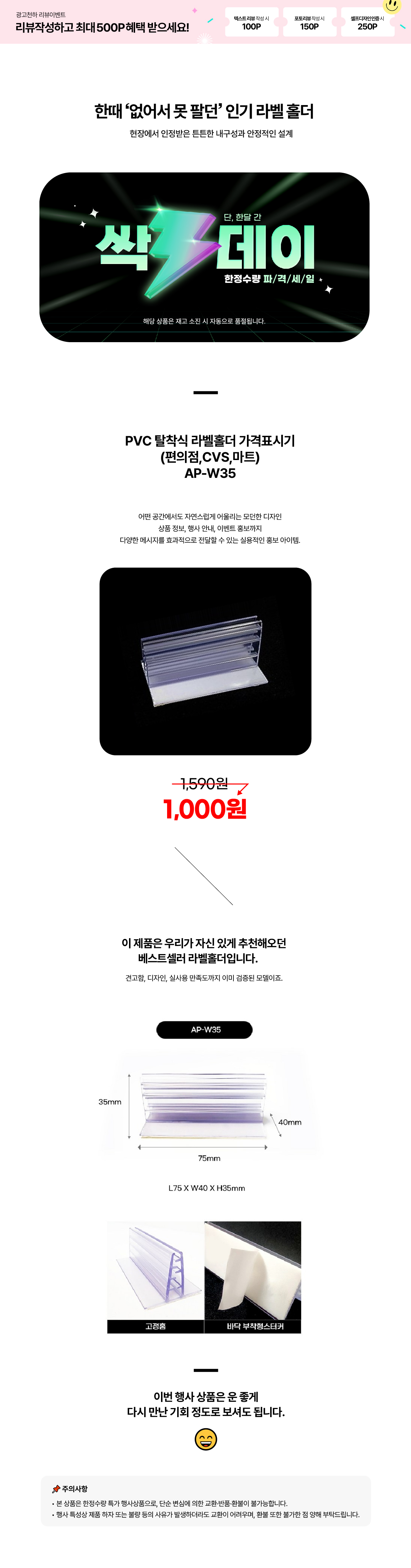 HOME > 싹쓰리데이 > 라벨홀더 > AP-W35 탈착식 라벨홀더 7.5*3.5(PVC)
