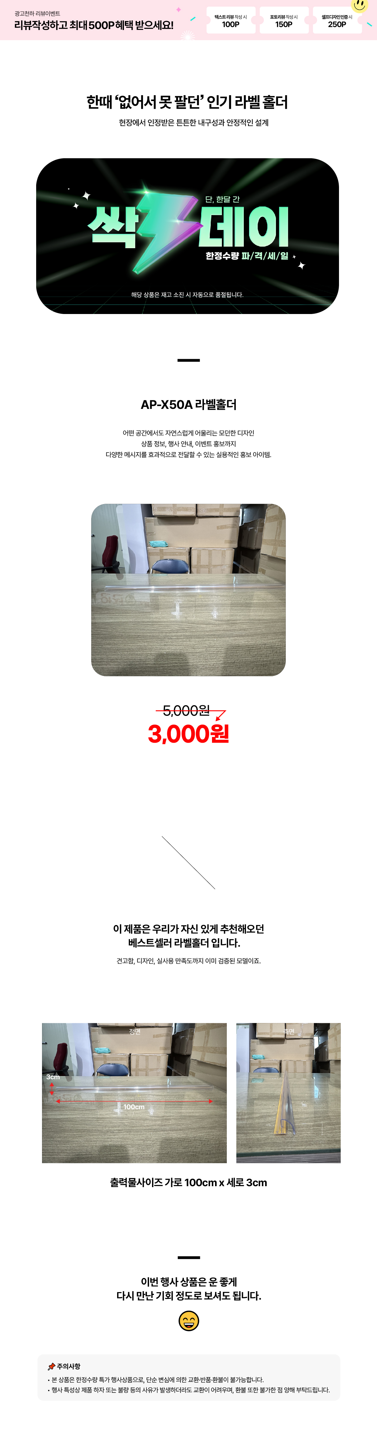 HOME > 싹쓰리데이 > 라벨홀더 > AP-X50A 탈착식 라벨홀더 100*3(PVC)